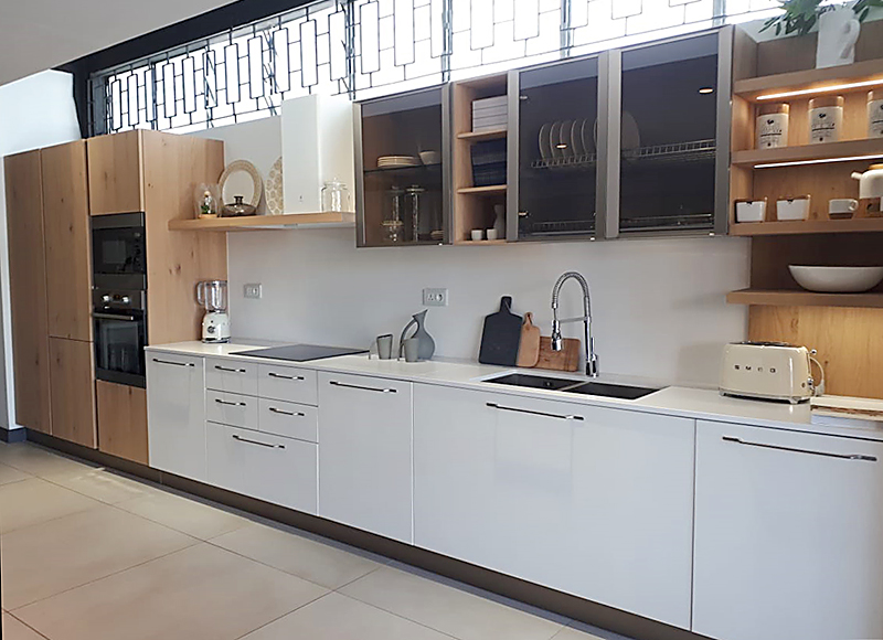The store offers visitors the opportunity to admire personally some of the flagship models of Cucine Lube and Creo Kitchens modern collections, such as Clover, Oltre and Kyra.